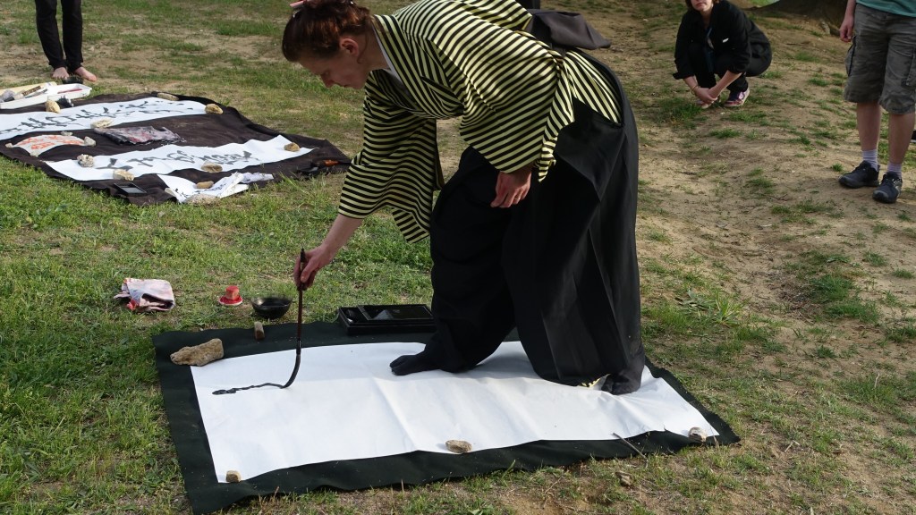 Calligraphie japonaise et et sumi-e (dessin à l’encre) en pleine nature et en toute liberté.
